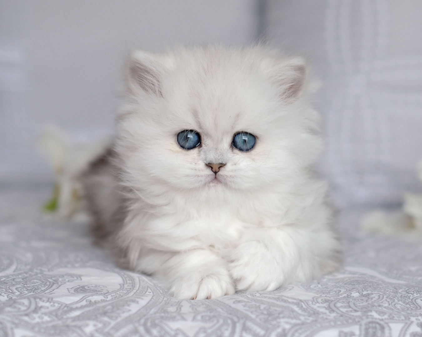 Please, be understandable that eyes of very young kittens may not be fully open or focused because: we use strobe lights while taking pictures and high output light fixtures while taking videos/pics. If photo sessions are performed under natural lighting, it is done very close to the biggest window with lots of light coming in and usually directly towards the kitten’s face. It could be one of the reasons that causes extra tension onto the kitten's eyes. Please, note that younger kittens tend to not pose/ play at this young age, but they will.